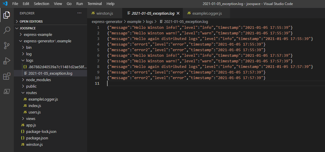 * reference site: https://thisdavej.com/using-winston-a-versatile-logging-library-for-node-js/