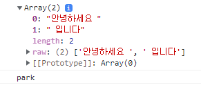 첫번째 값으로 문자를 배열로, 중간중간 변수값들은 따로 저장이된다.