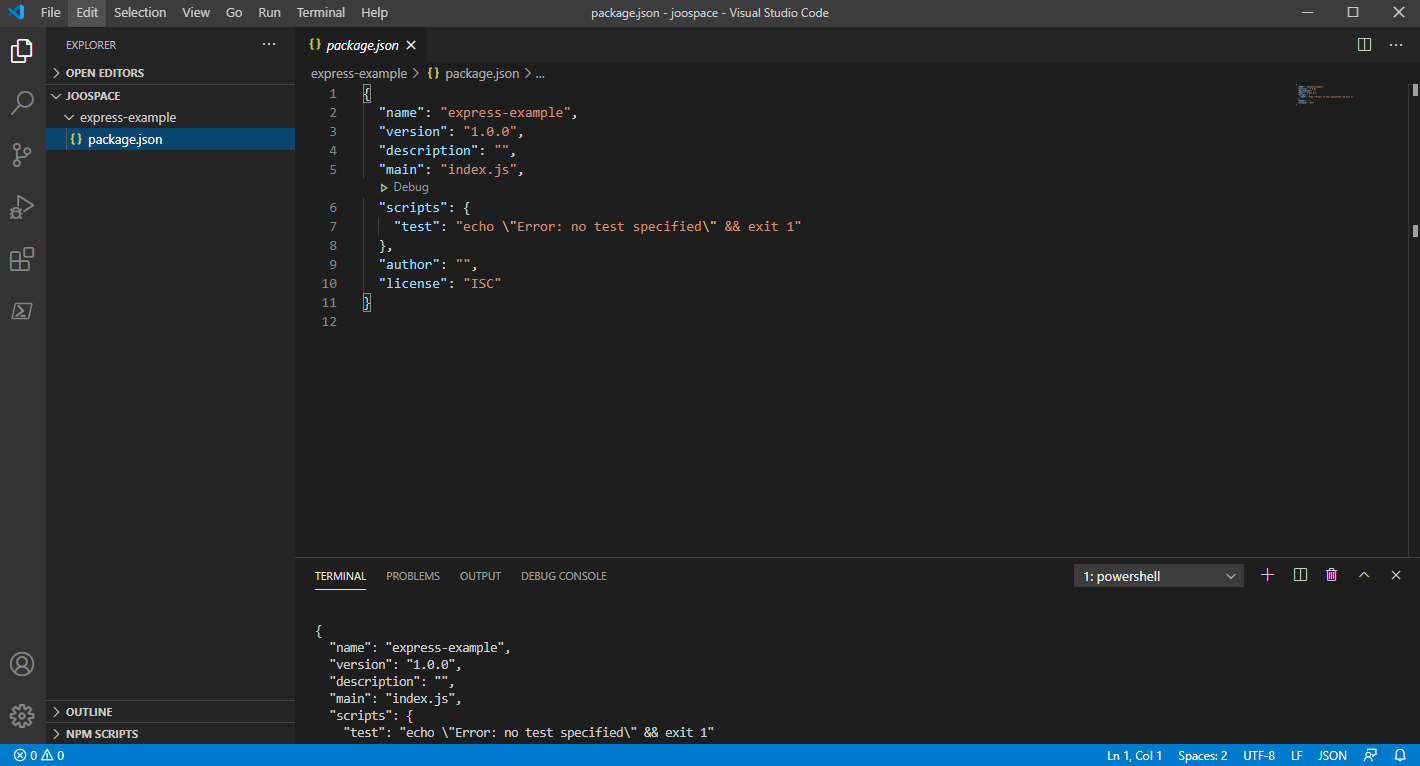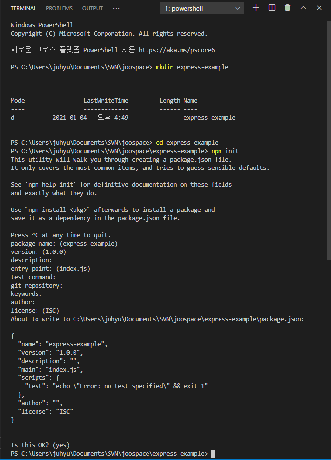 폴더를 하나 만들어 package.json 파일을 만든다.